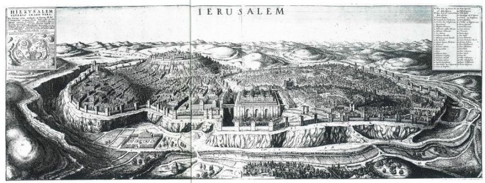 Jest to opublikowany przez Wacława Hollara w XVII wieku złotoryt z widokiem Jerozolimy ze Wzgórza Oliwnego. Ponieważ topografia jest poprawna i szczegółowa więc nie jest to widok "fantastyczny”, a ponieważ na Wzgórzu Świątynnym BRAKUJE zbudowanej przez cesarzową Helenę Skalnej Katedry więc nie jest to rycina bizantyjska a RZYMSKA. Pałac Salomina czyli Wzgórze Świątynne jest oddzielony fosą z kładką od Pałacu 300 Nałożnic zaś Świątynia Salomona jest na górze SYJON.